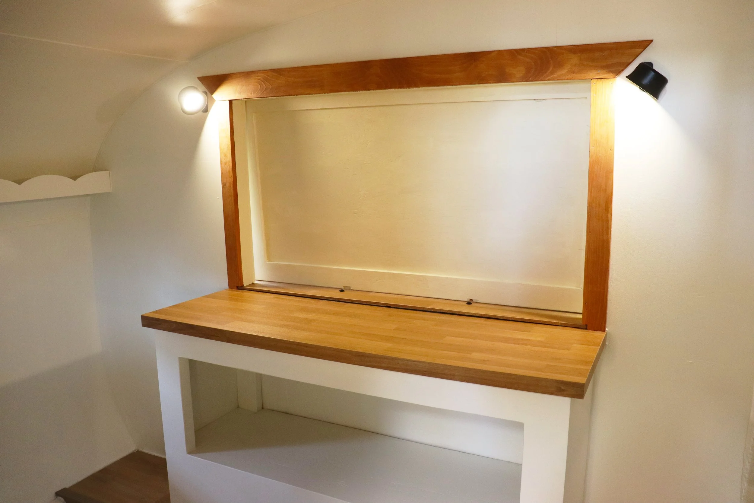 The camper features everything you might need to pull off an excellent cocktail or mocktail bar. An extended bar top, fridge, storage space, sink, and plenty of room for coolers to keep your drinks ice cold. PLUS bartenders to keep the party going!